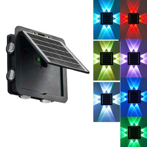 Đèn hắt tường 4 đầu – 8 tia năng lượng mặt trời HT08-RGB được trang bị chíp LED nhiều màu sáng, có thể lựa chọn 1 màu cố định hoặc thay đổi màu sáng liền. Sử dựng năng lượng mặt trời để phát sáng, phù hợp với nhiều không gian lắp đặt, những nơi có ánh năng trực tiếp đều có thể lắp đặt và sử dụng đèn. Dưới đây là thông tin chi tiết về đèn hắt tường 4 đầu – 8 tia.